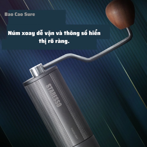 - Độ mịn cafe tùy chỉnh, áp ứng nhiều kiểu pha cafe: espresso,cafe pour over, cafe bình moka, cà phê pha thủ công với máy Staresso...