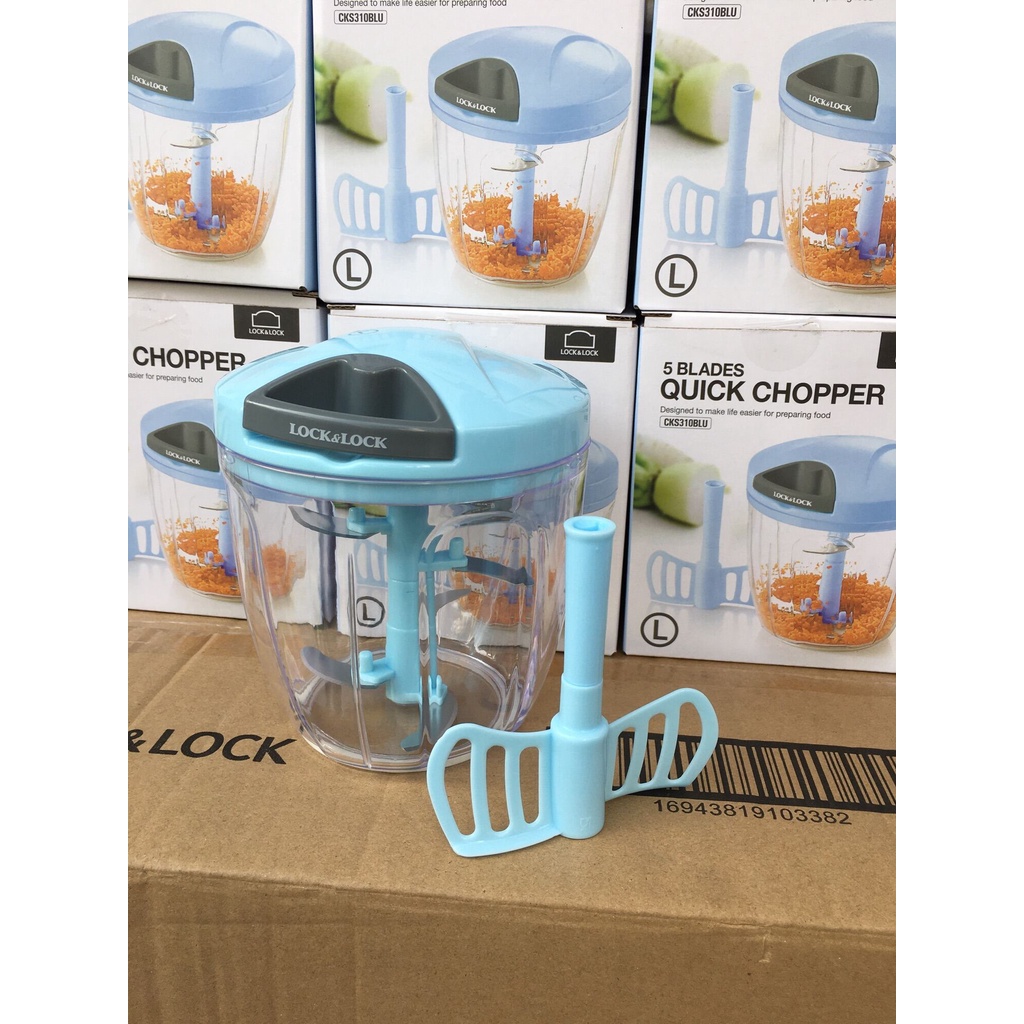 Cối xay tay Lock & Lock CKS310BLU CKS307 nghiền thức ăn 5 lưỡi dao thép - cối xay hành tỏi ớt Quick Cutter