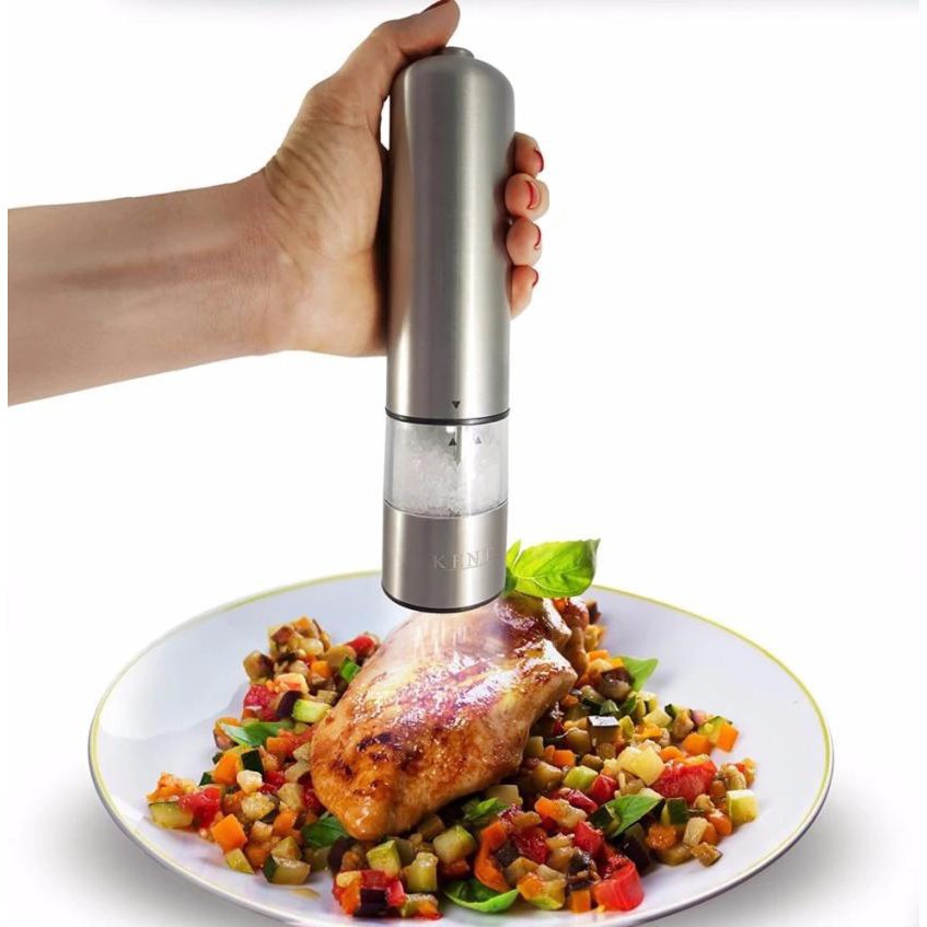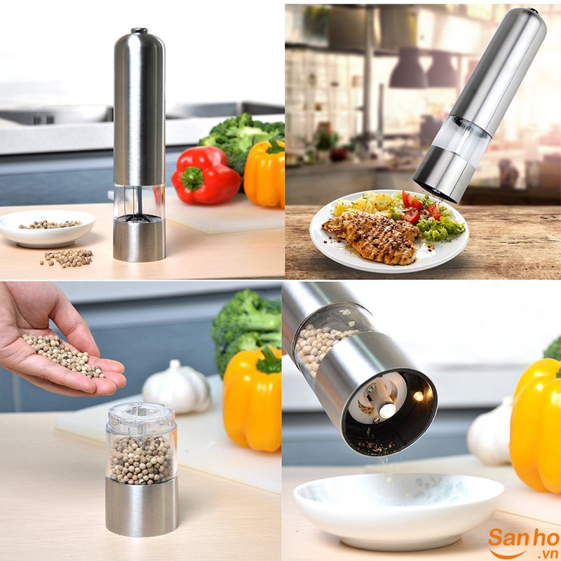 Máy xay tiêu, xay gia vị cầm tay tự động, vỏ Inox không gỉ (Bạc)Máy xay hạt tiêu là một món phụ kiện cần thiết trong nhà bếp của bạn, các bon ăn cần thêm gia vị để thêm phần thơm ngon hơn. Khi còn nghi ngờ về chất lượng hạt tiêu xay sẵn ở các chợ, thì các bà nội chợ lại lựa chọn tiêu nguyên hạt để đảm bảo độ thơm ngon cũng như về chất lượng. Hôm nay, shop chúng tôi muốn giới thiệu đến các bà nội trợ, các nhà đầu bếp một sản phẩm máy xay hạt tiêu nhỏ gọn và hiện đại.
