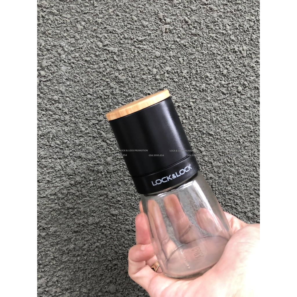 Cối xay tiêu thủy tinh Lock&Lock dung tích 140ml lưỡi sứ nắp gỗ sồi tiện dụng CKO115