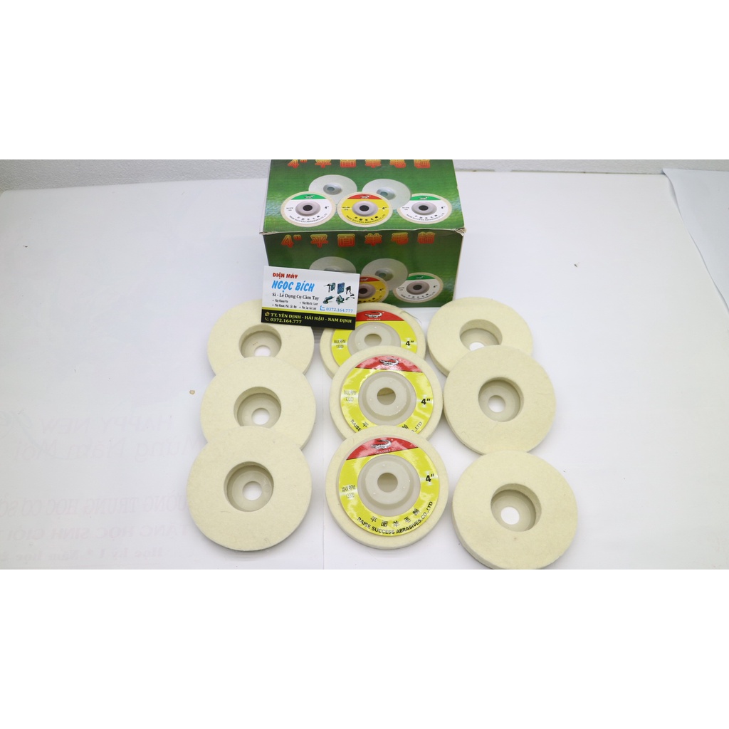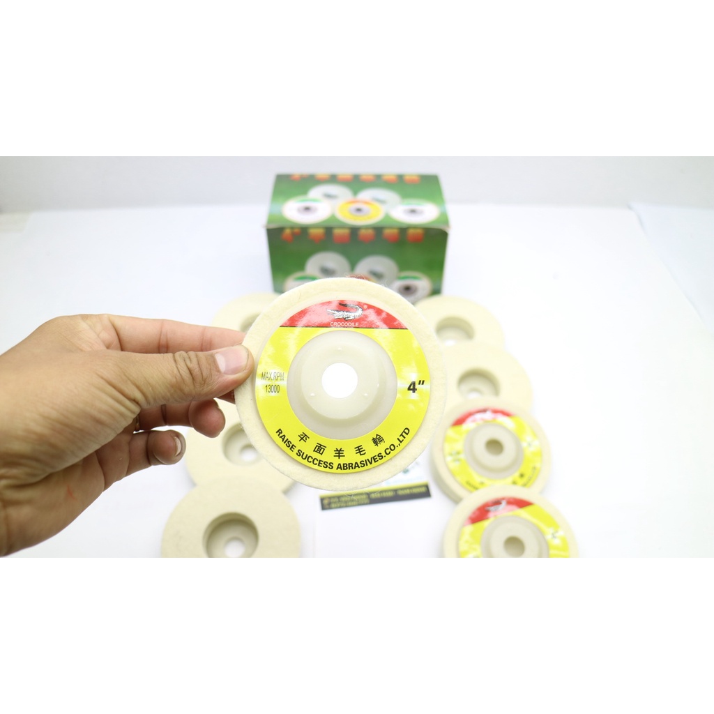 Giới thiệu [COM BO 1,3 ] Nỉ đánh bóng inox 100mm Nỉ trắng HD,Nỉ Trăng Cá Sấu (1miếng)