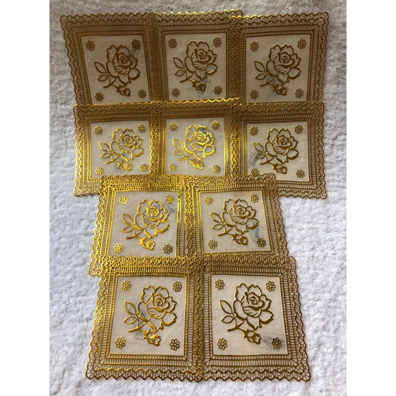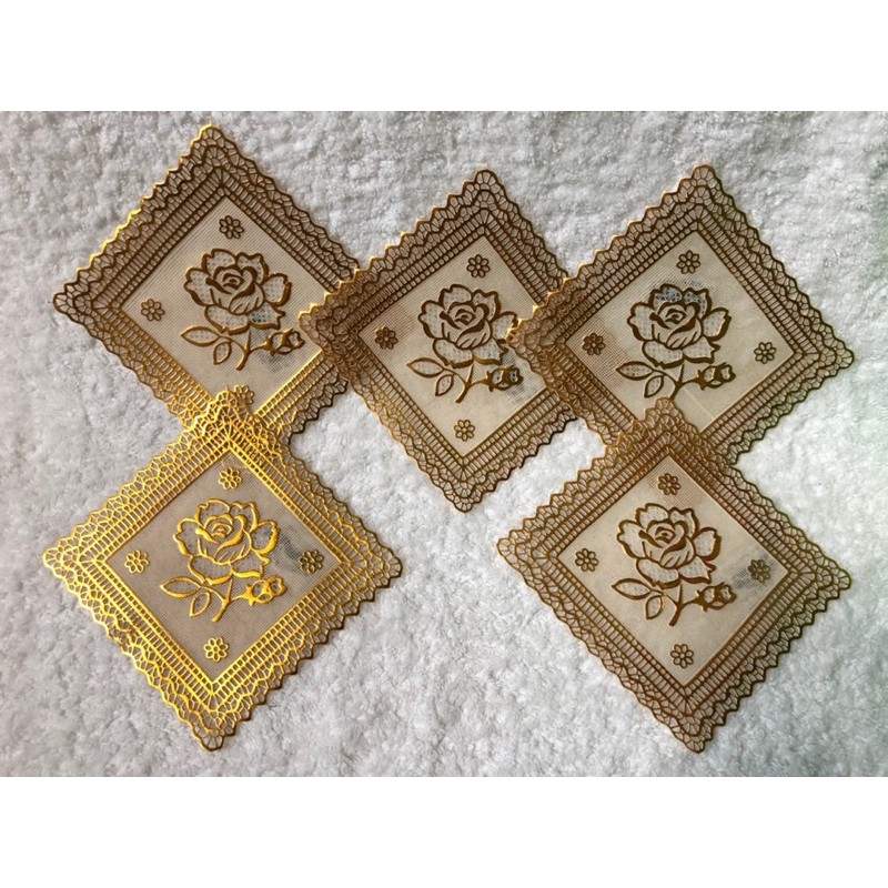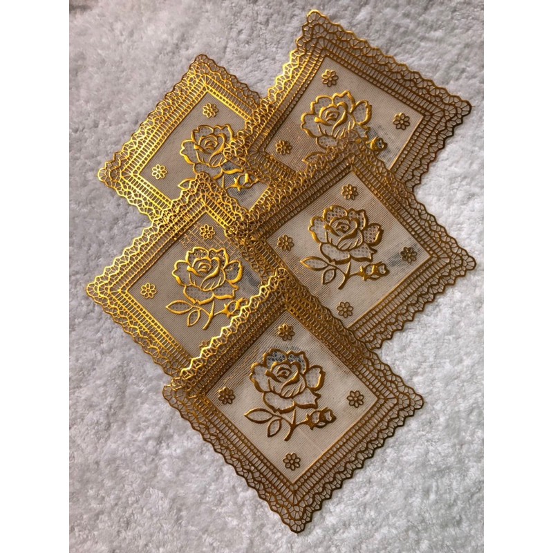Nhà cửa & Đời sống > Bộ đồ bàn ăn > Khay, tấm lót bàn ăn || com bo 10 cái Lót ly ren vàng giá sỉCòn hàng