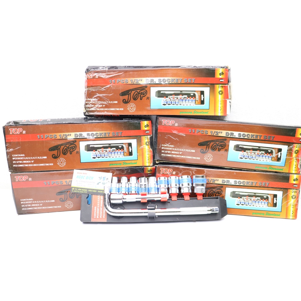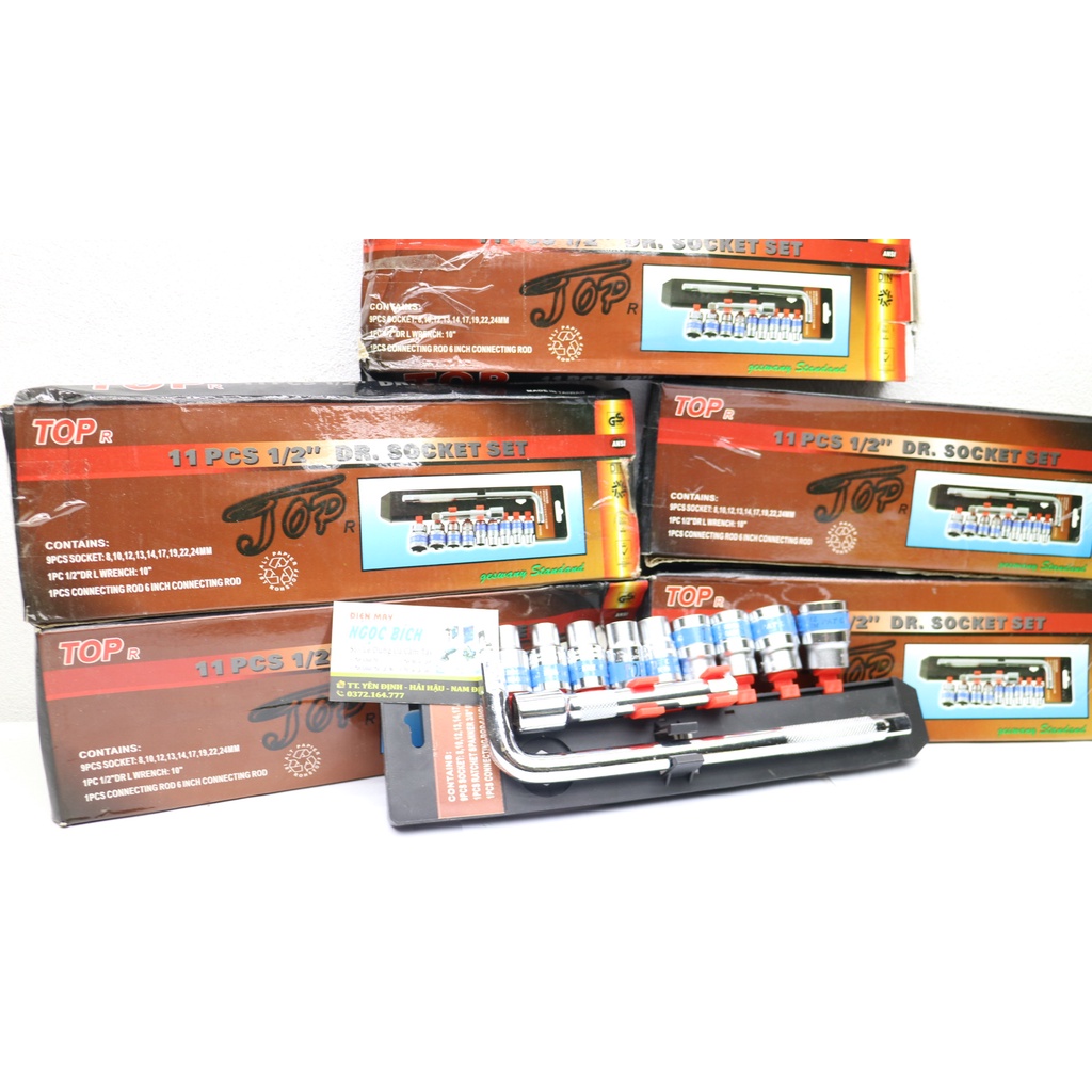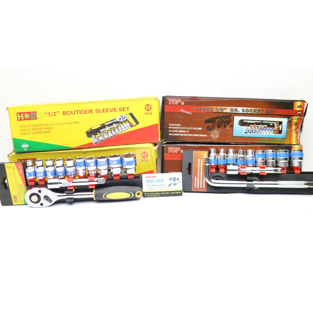 Bộ tuýp 12 chi tiết 1/2- Gồm: 9 đầu tuýp 1/2 inch (12.7mm): 10, 11, 12, 13, 14, 15 17, 19, 22,.24mm.