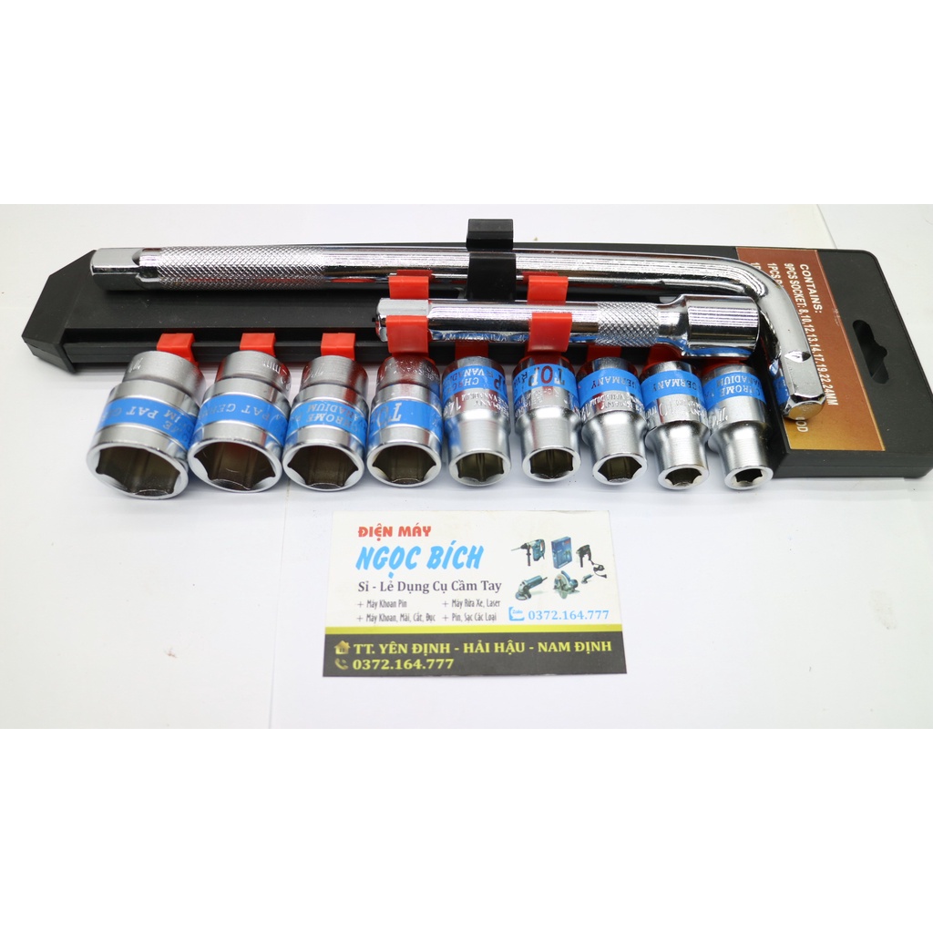 - Gồm: 9 đầu tuýp 1/2 inch (12.7mm): 8 10, 12, 13, 14, 17, 19, 22, 24mm.