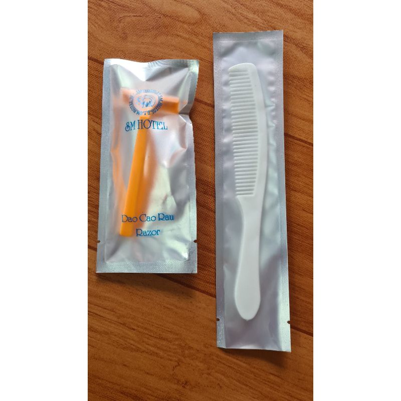 com bo100 dao cạo râu túi nhôm và 100 lược dài túi nhôm