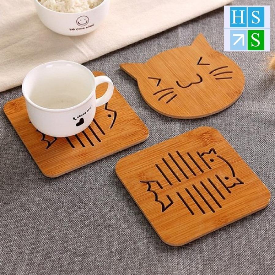 Combo 02 Miếng lót nồi lót cốc ly bằng gỗ sang trọng chống trượt cách nhiệt (15x15cm, Hình giao ngẫu nhiên) - HS Shop
