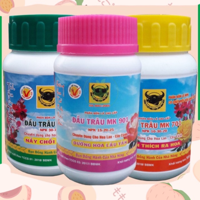 Dụng cụ làm vườn 👍✅ Combo: 03 hũ Phân Bón Đầu Trâu 501 ☘ 701 ☘ 901 (100 gram/ hũ)