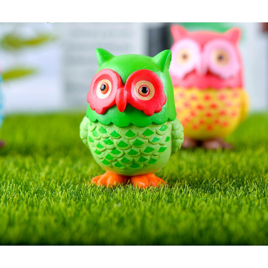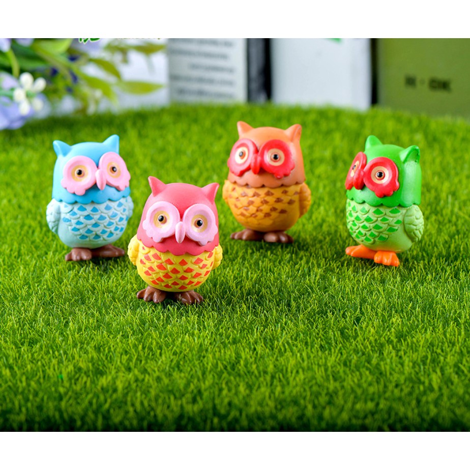 Combo 04 mô hình chim cú mèo cách điệu với màu sắc rực rỡ trang trí tiểu cảnh