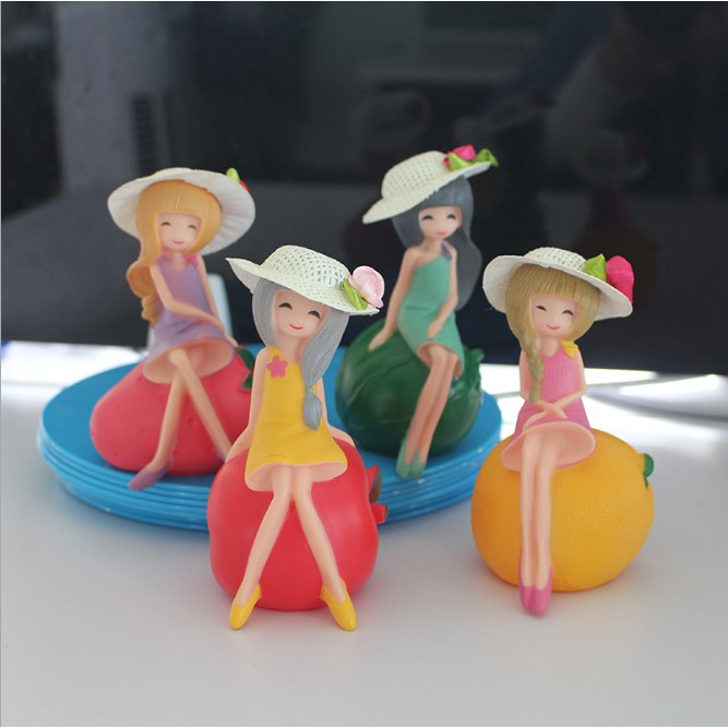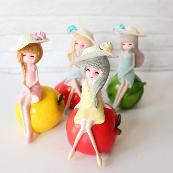 Combo 04 mô hình cô nàng sành điệu ngồi trên trái cây lớn thích hợp trang trí bánh kem, móc chìa khóa, DIY