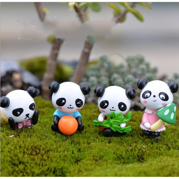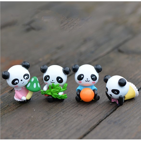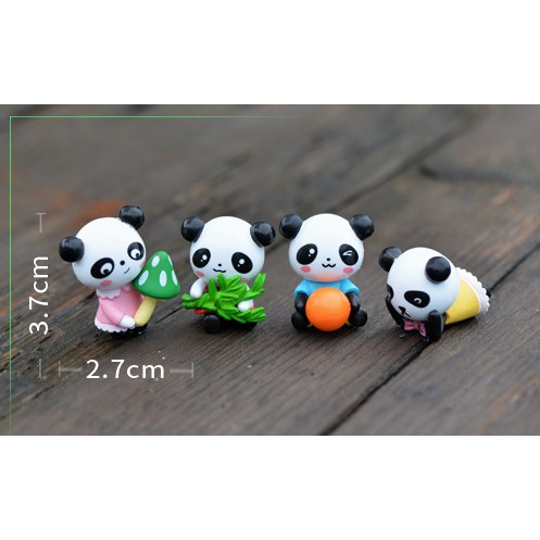 Combo 04 mô hình gấu trúc nhỏ đáng yêu thích hợp trang trí tiểu cảnh, móc khóa, DIY