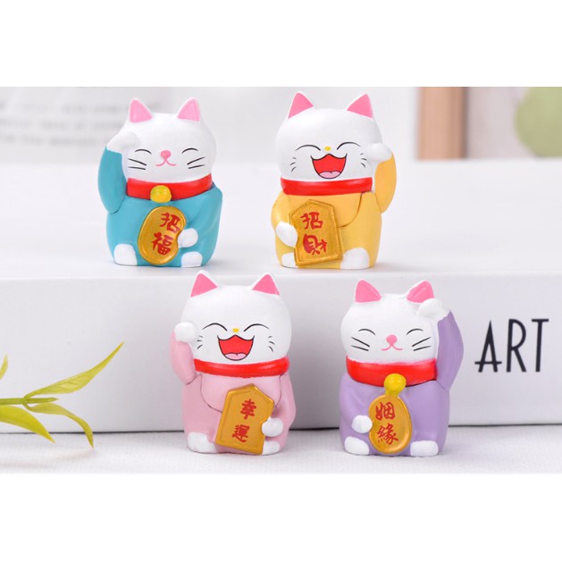 Combo 04 mô hình mèo thần tài Maneki Mako dễ thương cho các bạn trang trí tiểu cảnh, móc chìa khóa, DIY