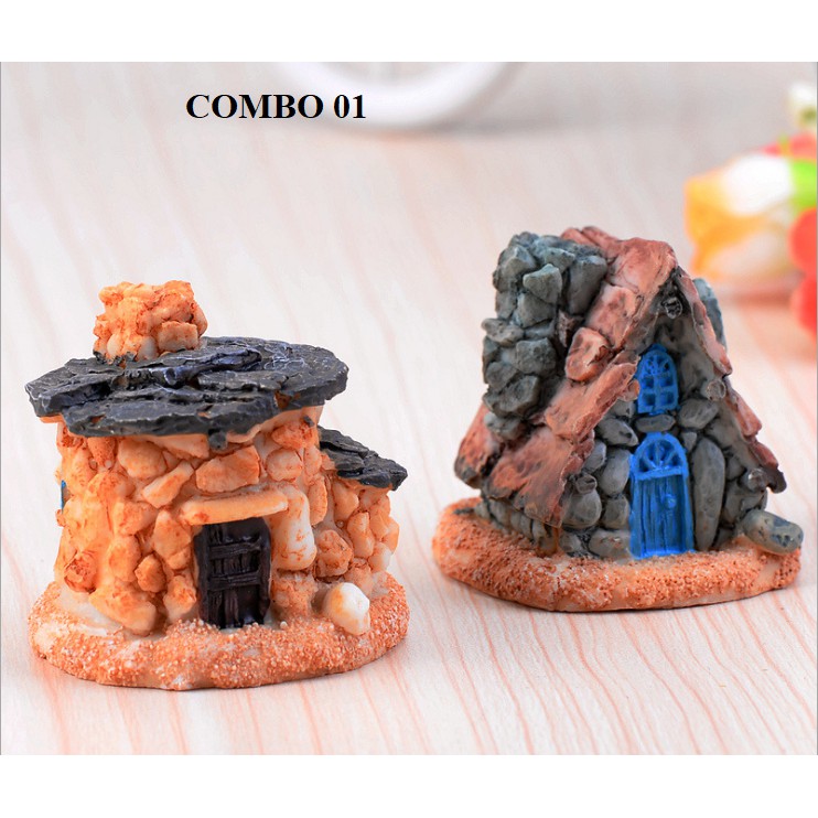 Nhà cửa & Đời sống > Làm vườn > Trang trí vườn || Combo 04 mô hình nhà đá tảng kiểu Bắc Âu - Scotland trang trí bonsai, tiểu cảnhCòn hàng