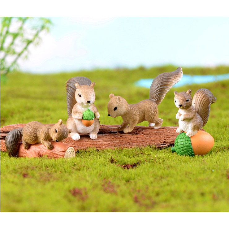 Combo 04 mô hình sóc với các hoạt động tự nhiên thích hợp trang trí tiểu cảnh, móc chìa khóa, DIY