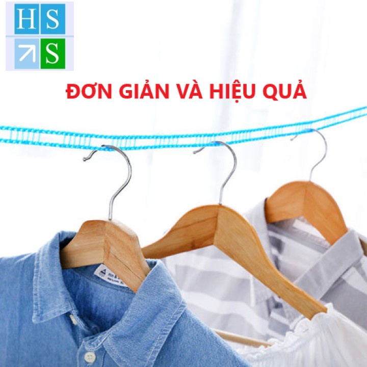 DÂY PHƠI QUẦN ÁO THÔNG MINH dài 5m- Dây phơi quần áo thông minh giúp cố định các móc quần áo khi phơi tránh bị gió thổi dồn gây ẩm ướt và lâu khô.