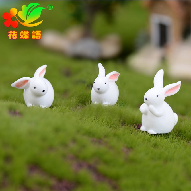 Combo 05 mô hình thỏ mập trắng mũm mĩm dễ thương trang trí tiểu cảnh, bonsai, DIY