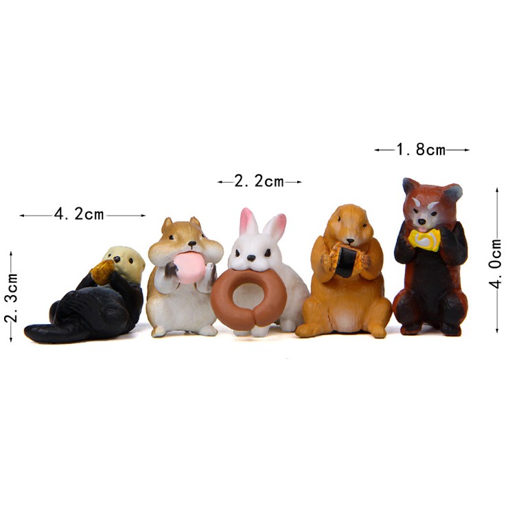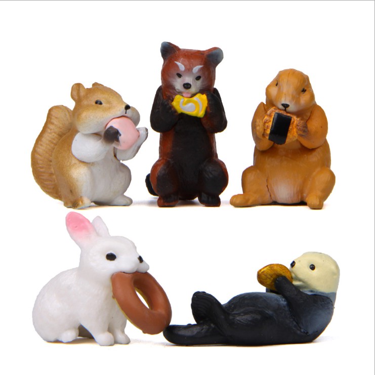 Bộ combo 05 mô hình thú ăn bánh cực dễ thương cho các bạn trang trí tiểu cảnh, xe hơi, móc chìa khóa, DIY