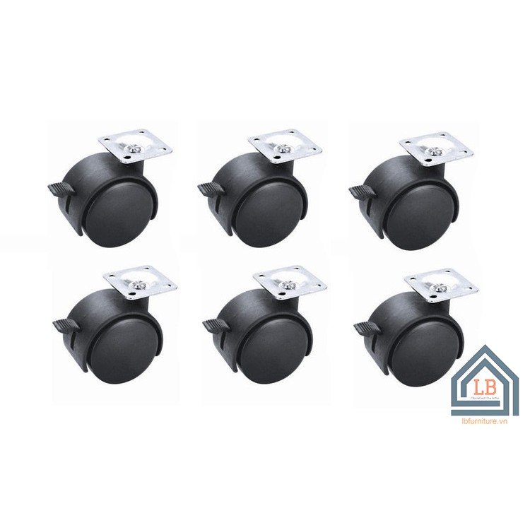 Combo 06 Bánh xe đế tủ xoay 360 độ có khóa + TẶNG KÈM ỐC VÍT