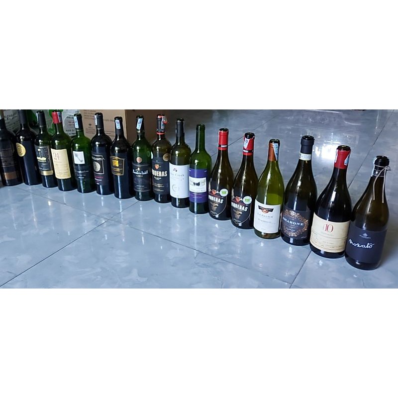 Vỏ chai vang có nhãn hình ngẫu nhiên dùng để trang trí :số lượng : gồm 06 chai giá 99.000đ