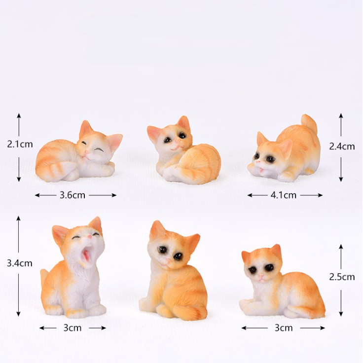 Giới thiệu Combo 06 mô hình mèo vàng dễ thương dùng trang trí tiểu cảnh, terrarium, móc khóa, DIY