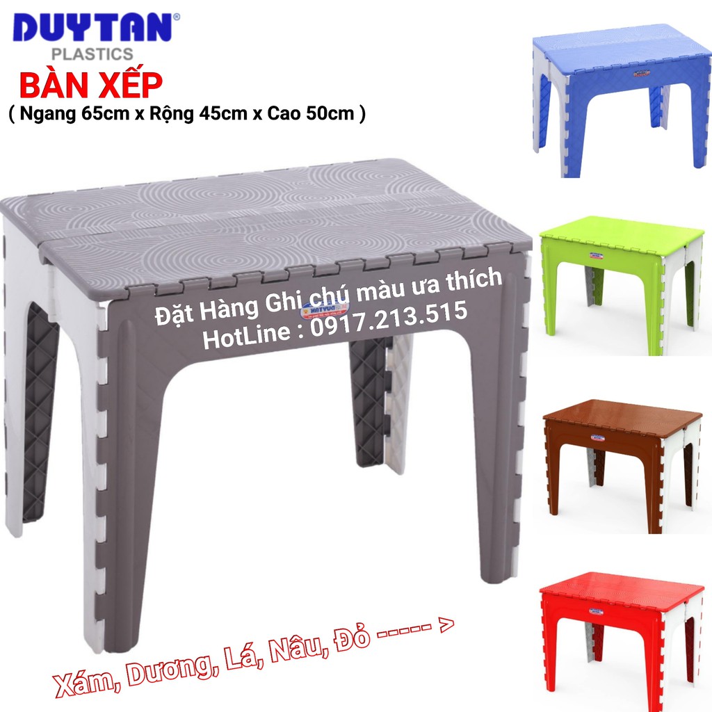- Bàn Nhựa Xếp Duy Tân (65 x 45 x 50 cm) No.947 dễ sử dụng, dễ vệ sinh, chất liệu nhựa nguyên sinh và chân bàn được làm từ nhựa chính phẩm Duy Tân an toàn cho sức khỏe của bạn và gia đình.