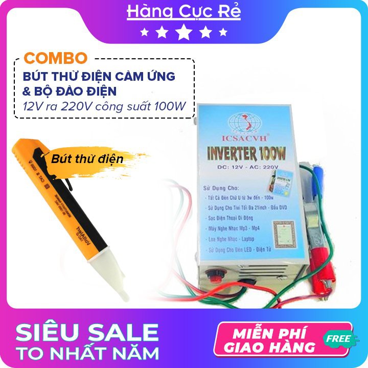 Combo 1 Bút thử điện cảm ứng từ xa an toàn + 1 Bộ đảo điện 12V ra 120V công suất 100W - Shop Hàng Cực RẻTHÔNG TIN SẢN PHẨM