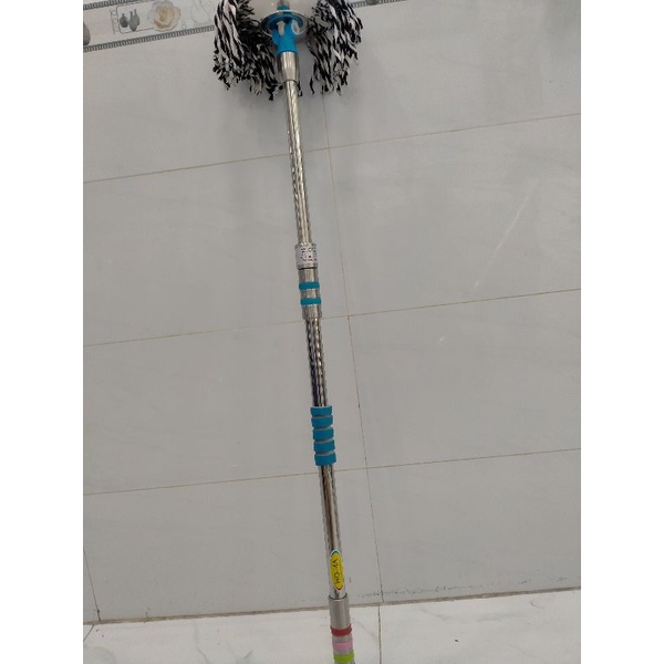 Cây lau có thể thay đổi độ dài, dễ dàng tháo lắp, bông lau làm bằng sợi bông vải cotton thấm hút tốt và dễ vắt khô.