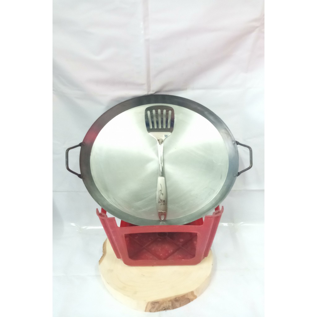 COMBO 1 CHẢO THÉP HAI QUAI CHIÊN BÁNH BỘT,CHIÊN CƠM,CHIÊN NUI,MÌ XÀO BÒ+ 1 SẠN LẬT RÃNH INOX CAO CẤP.
