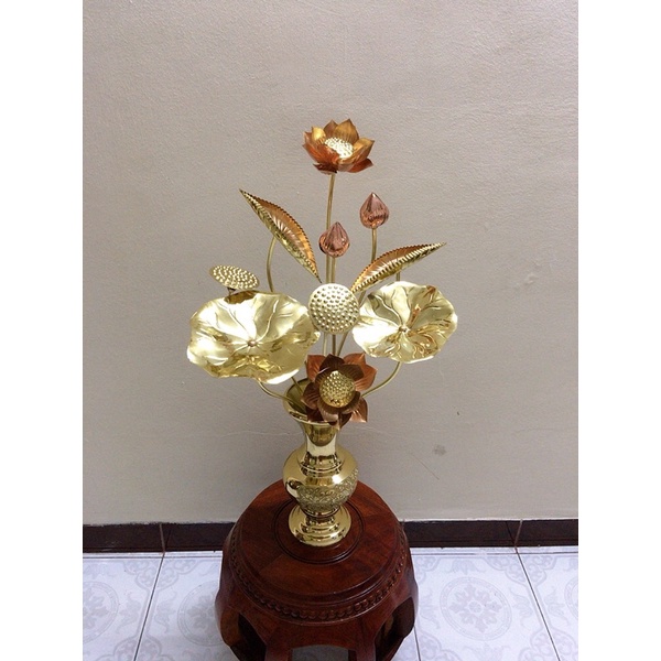 Sản phẩm gồm:- 1 lọ hoa bằng đồng cao 23 nặng 1,3kg/1lọ, thân họa tiết bông cúc tỉ mỉ sắc nét, màu vàng bóng bền đẹp theo thời gian.