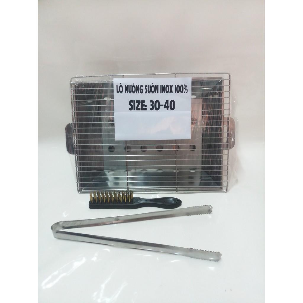 COMBO 1 LÒ NƯỚNG INOX SIZE 30x40CM 100% CAO CẤP+1 BÀN CHẢI CÁN THÉP+1 GẮP INOX.