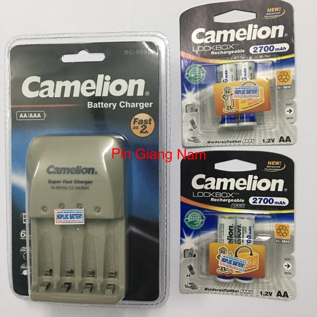Combo 1 máy sạc pin AA/ AAA Camelion 0905A và 4 viên pin AA 2700 mAh màu trắng