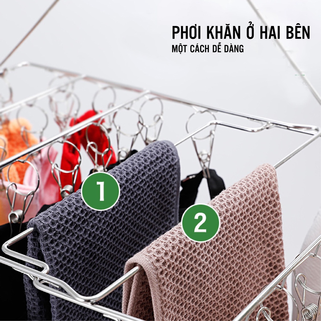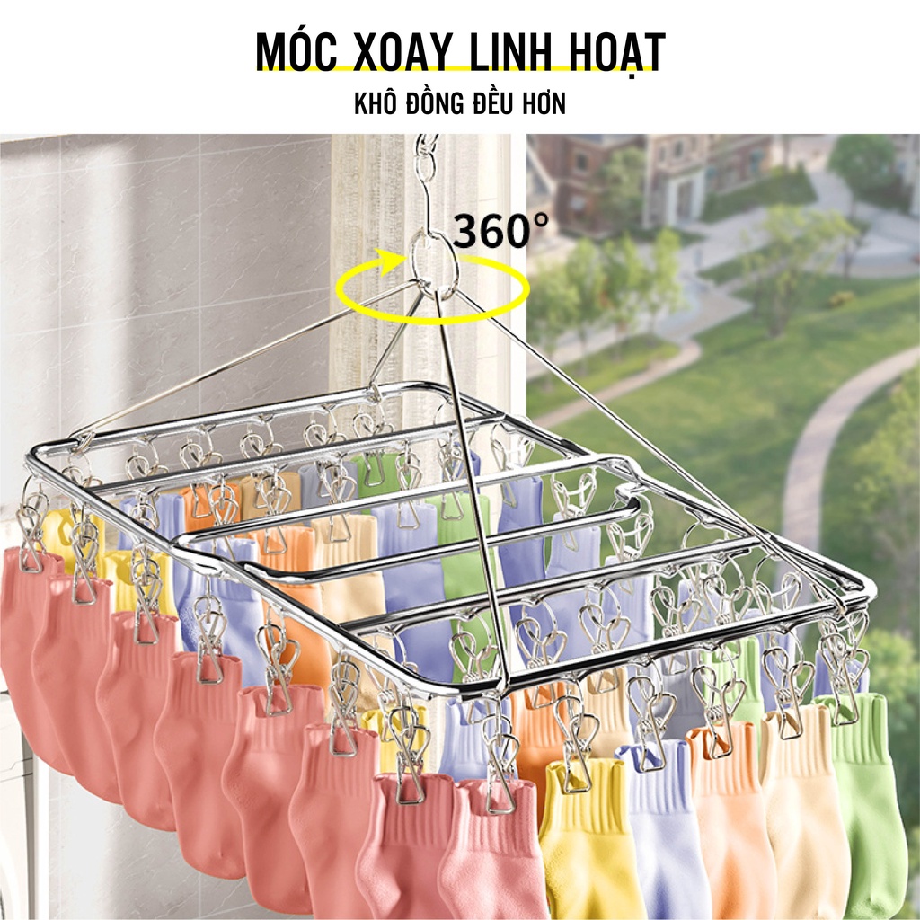 - Với thiết kế lên tới lên đến 52 kẹp vừa tiết kiệm không gian vừa giúp quần áo mau khô