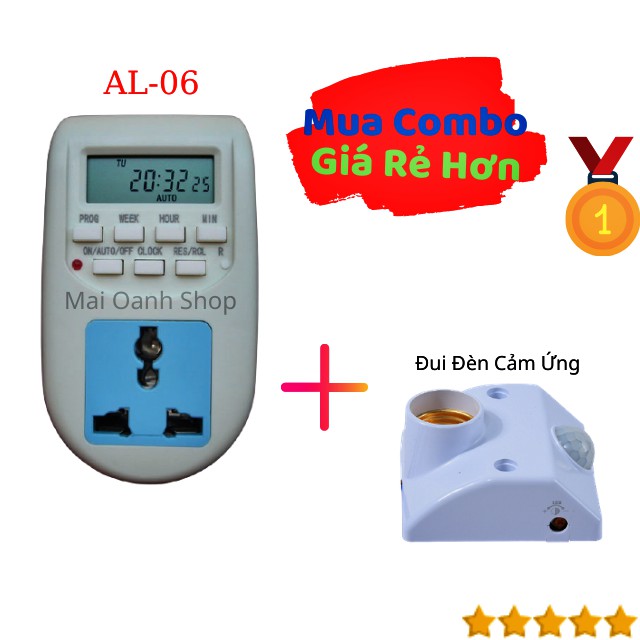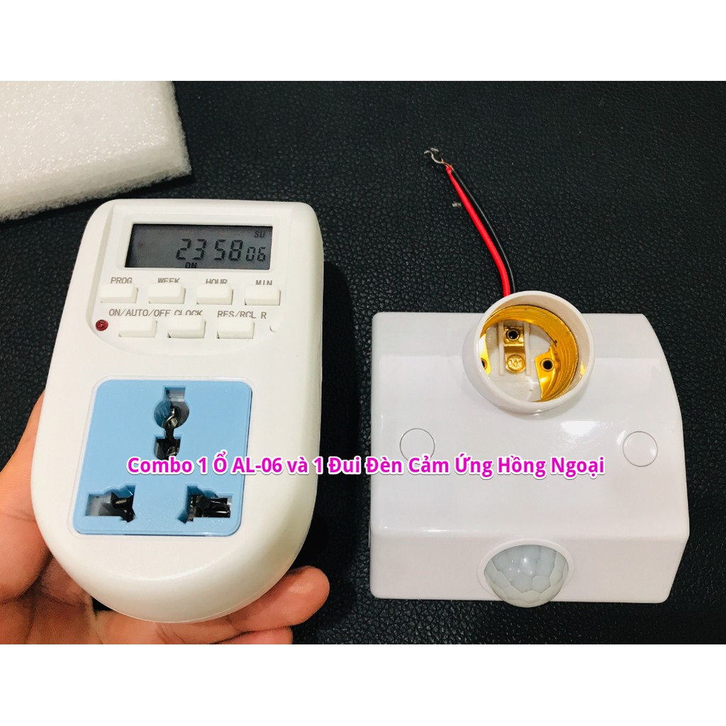 Combo 1 Ổ Cắm Hẹn Giờ Điện Tử Al-06 & 1 Đui Đèn Cảm Ứng Hồng Ngoại