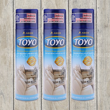 1 thùng 12 chai Toyo làm sạch và bóng nội thất da, gỗ- Chai xịt làm sạch bóng mới đồ da và đồ gỗ Toyo là sản phẩm được sản xuất theo công nghệ Nano, dễ dàng làm sạch, đánh bóng các loại vật dụng làm từ đồ da, sofa, gỗ, cao su, nhựa, formica trong nhà, trong xe hơi, trên xe máy……