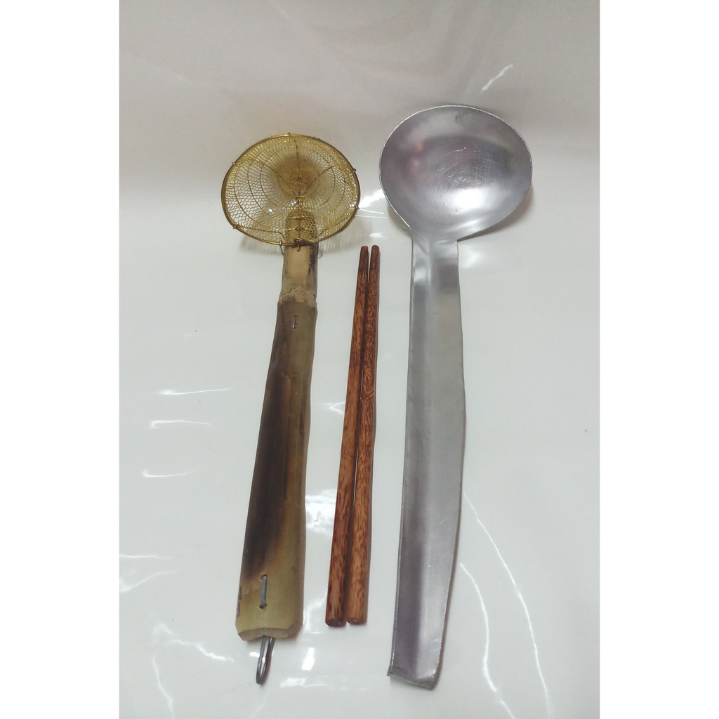 Nhà cửa & Đời sống > Bộ đồ bàn ăn > Bộ dao kéo || COMBO 1 VỢT THAU SIZE NHỎ 1T TRỤNG MÌ,HỦ TIẾU,RAU GIÁ+ 1 VÁ NHÔM MÚC NƯỚC LÈO+ 1 ĐÔI ĐŨA DỪA CAO CẤP.Còn hàng