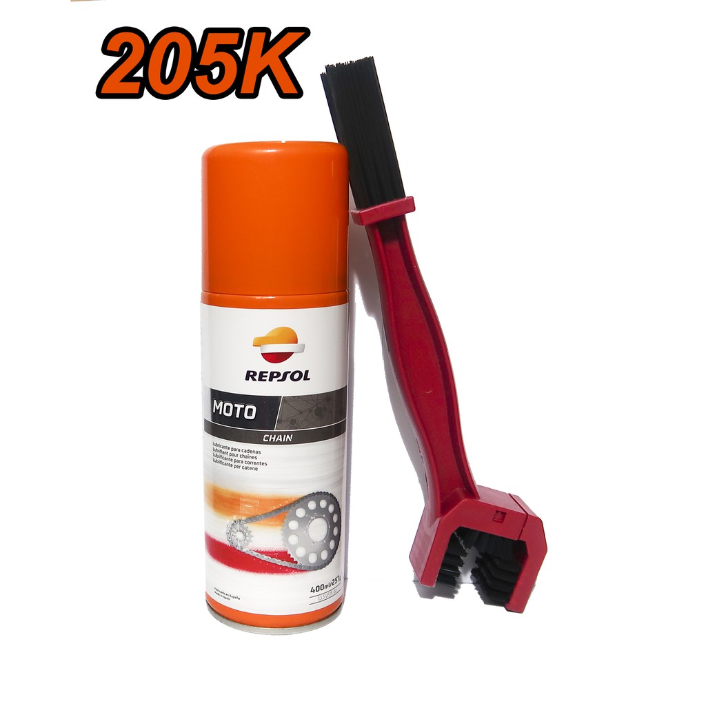 Giới thiệu Combo 1 xịt sên Repsol và 1 bàn chải chà sên