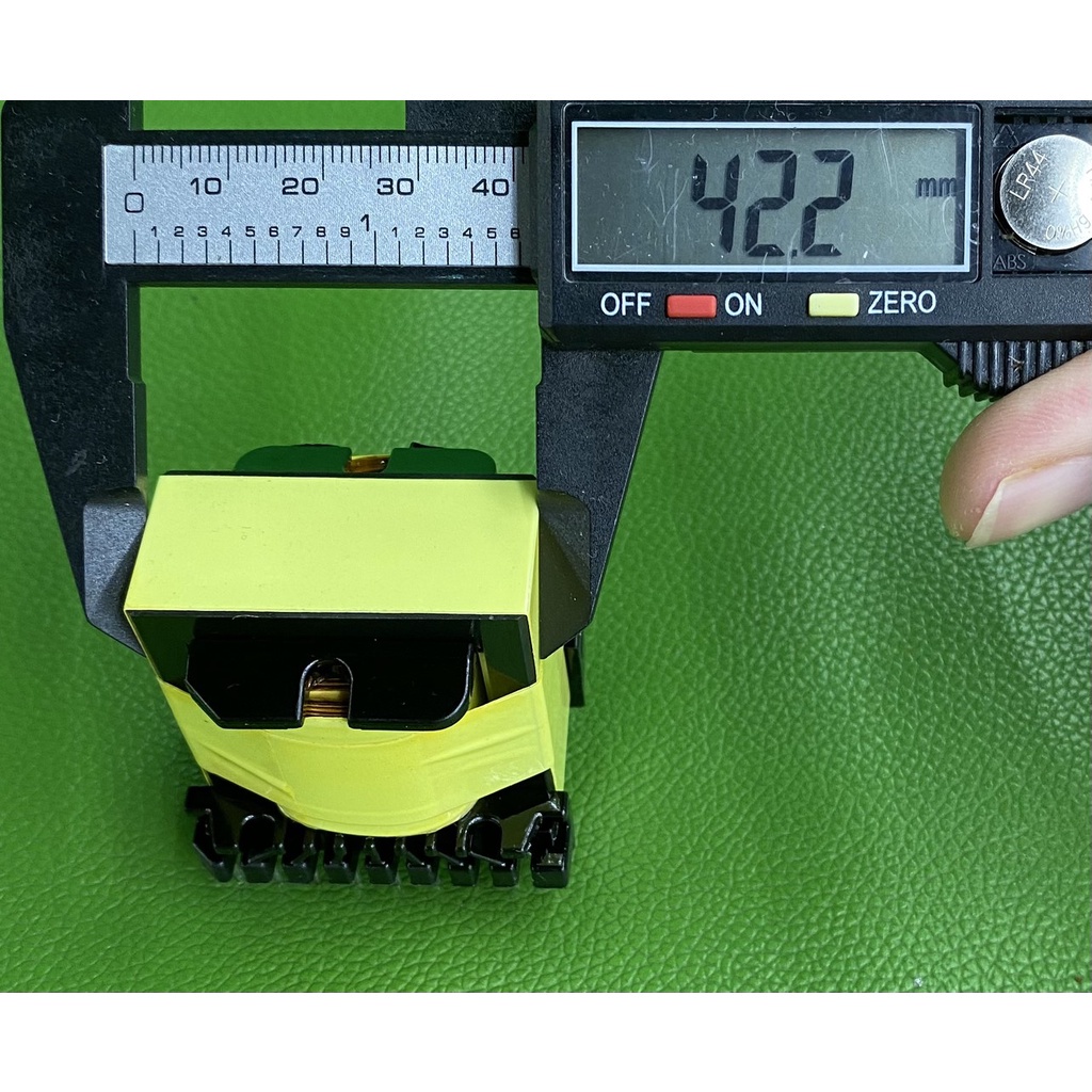 Biến áp xung EE42x20 được quấn bằng máy tự động, đi dây đều, rất chắc chắn do bó khít và cách ly kỹ lưỡng.+ Sơ cấp: 3 vòng x 3 vòng (bằng đồng lá 0,3 mm)