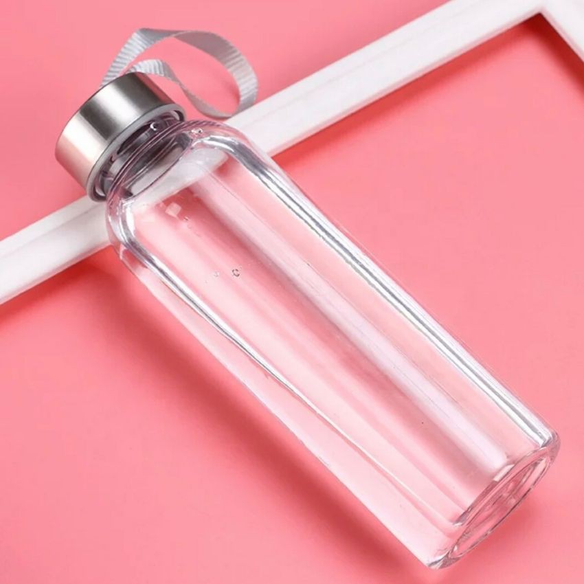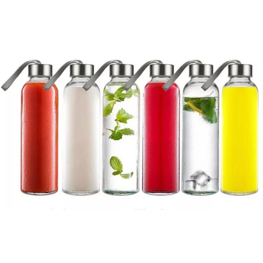 Giới thiệu (Combo 10) Bình đựng nước thuỷ tinh có nắp kèm dây xách dung tích 300ml /500ml