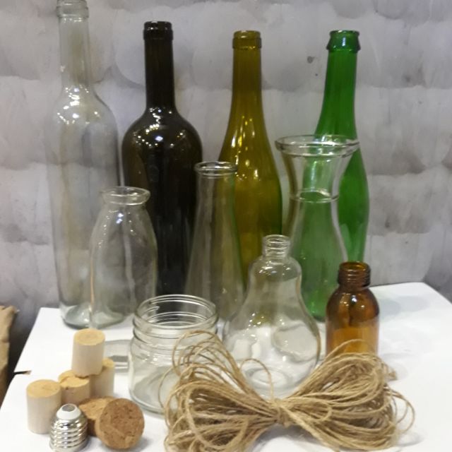 Combo gồm 10 bình thủy tinh trang trí các loại như hình và 50m dây thừng trang trí cực xinh xắn. lọ chuyên dùng để trang trí bàn tiệc , lễ cưới , liên hoan , sinh nhật hay thiết kế đèn trang trí , làm cây nến cắm đèn cày , làm chậu trồng hoa ... tùy theo sức sáng tạo của b , mang đến cho bạn một không gian mới lạ , đầy màu sắc , tận hưởng cuộc sống vui tươi , thoải thích.Giá WIF