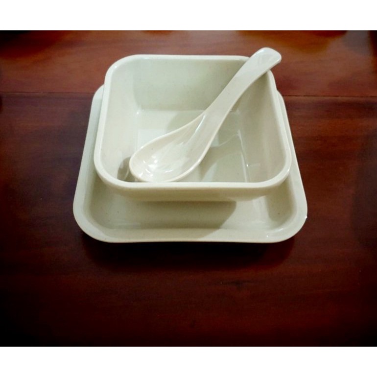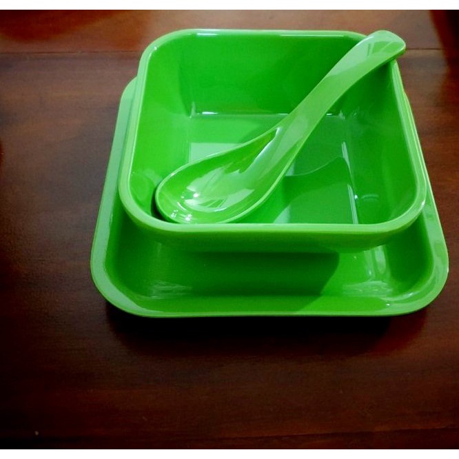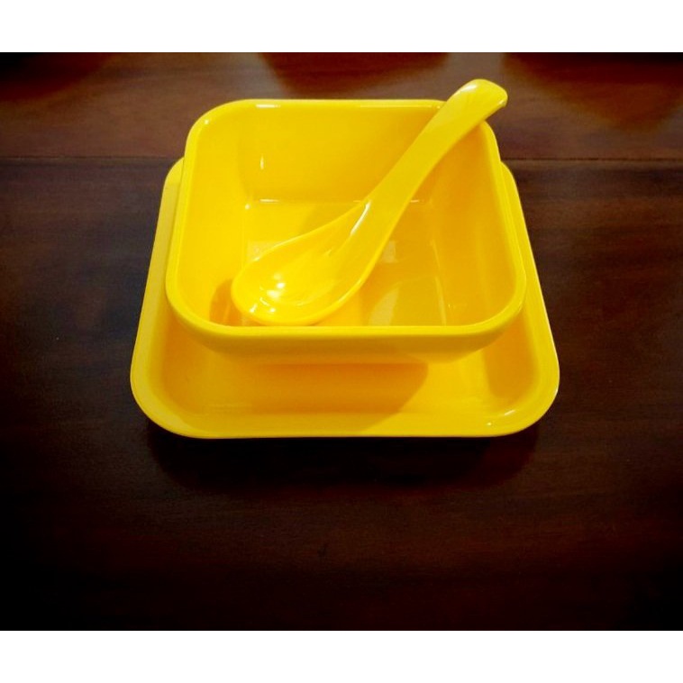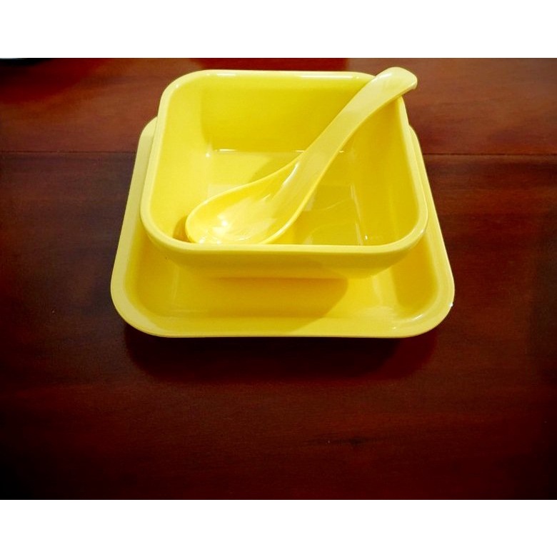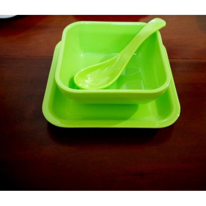 Bộ chén, dĩa vuông đựng chè và muỗng nhựa Melamine đủ màu(TV96+DV96+MCNo25)Bộ gồm 01 chén vuông, 01 dĩa lót vuông và 01 muỗng