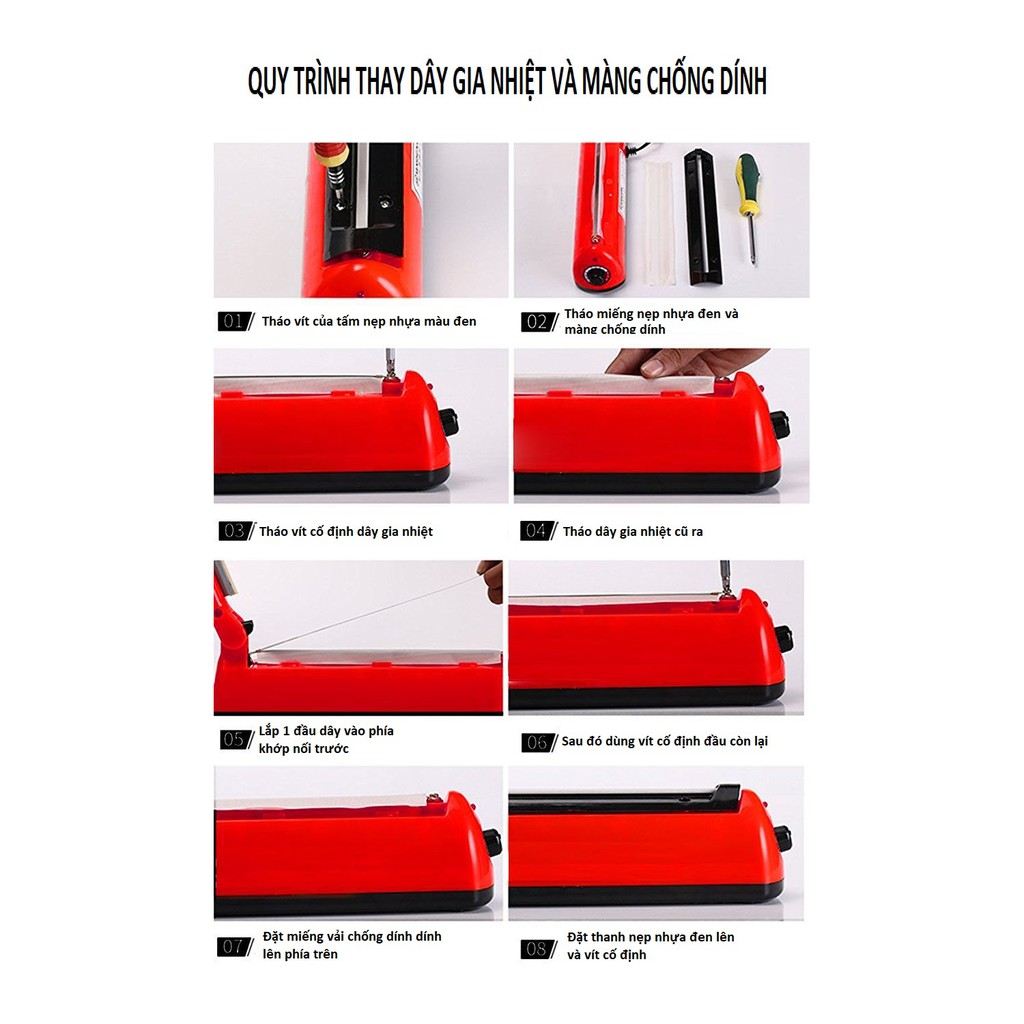- Để dây và máy bền hơn trong quá trình sử dụng: cần điều chỉnh thời gian gia nhiệt vừa đủ, làm sạch màng vải sau mỗi lần sử dụng. Bảo quản máy ở nơi kho giáo