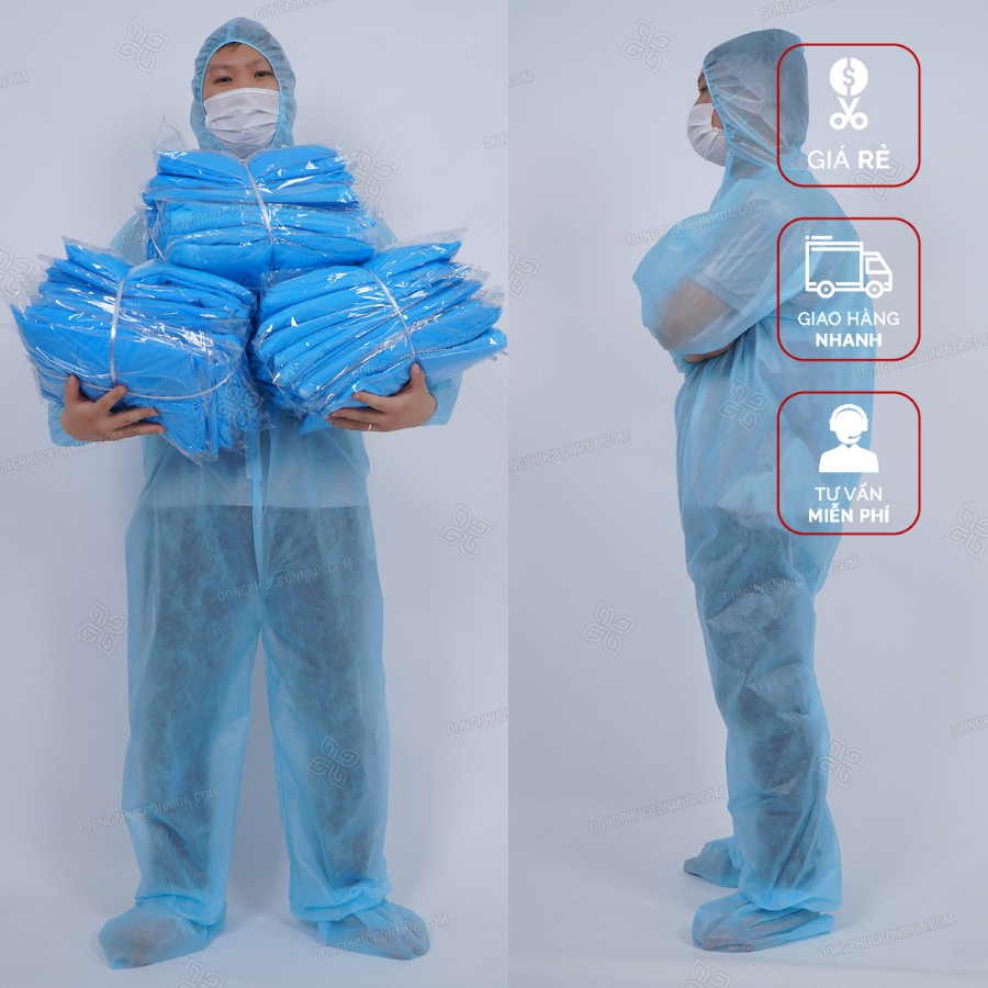 Combo 10 bộ quần áo phòng dịch 4 món CHỐNG NƯỚC,CHỐNG GIỌT BẮN 100% quần áo bảo hộ y tế chống dịch bệnhSET BỘ bảo hộ 4 MÓN GỒM : ÁO,MŨ,QUẦN VÀ BỌC DÀY (MŨ,ÁO MAY LIỀN QUẦN)