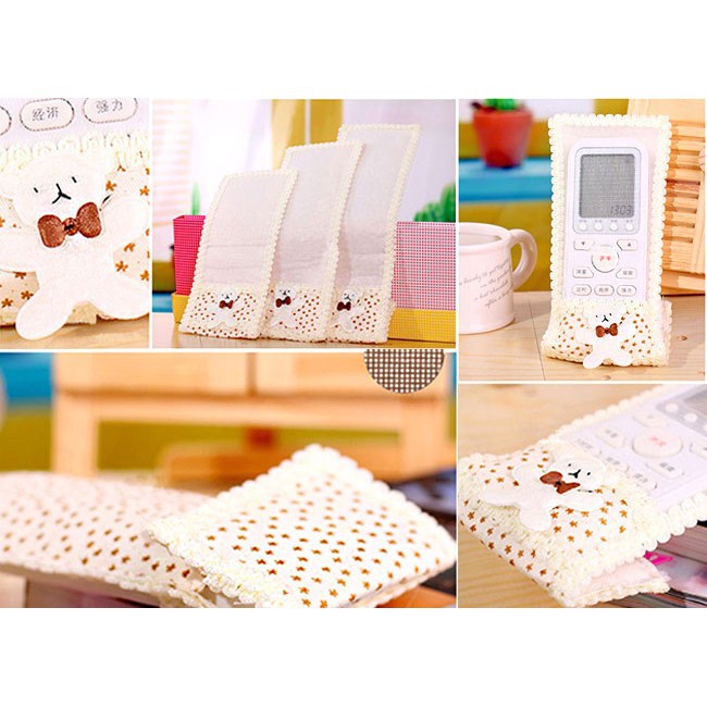 - Kiểu dáng xinh xắn, hoa văn nhã nhặn phối màu tươi tắn, bên dưới có đính một chú gấu nghộ nghĩnh, những chiếc remote khô cứng sẽ trở nên sinh động và đẹp mắt hơn.