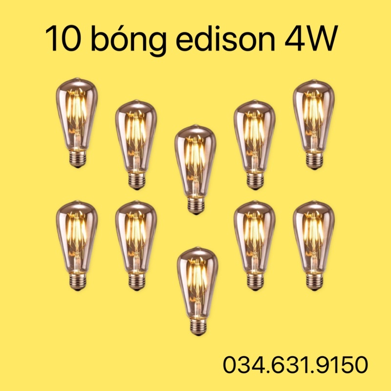 combo 10 bóng edison 4W , 10 bóng kèm dây 5M 10 đui , dây lõi đồng loại tốt chống nước