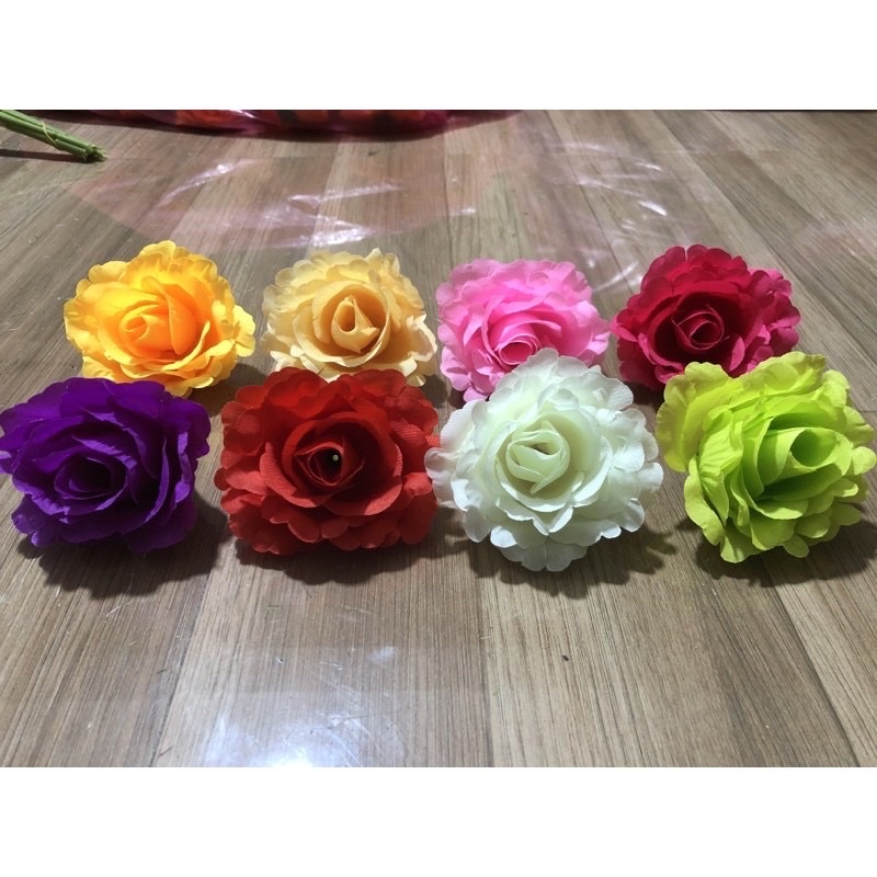 Hoa hồng nở đầu bông trang trí tùy theo ý của khách, trang trí background, thảm cỏ, tường, shop, thảm hoa, trang trí cùng loại hoa khác, làm chùm hoa,...- Chất liệu: Vải cây không phai, bền màu