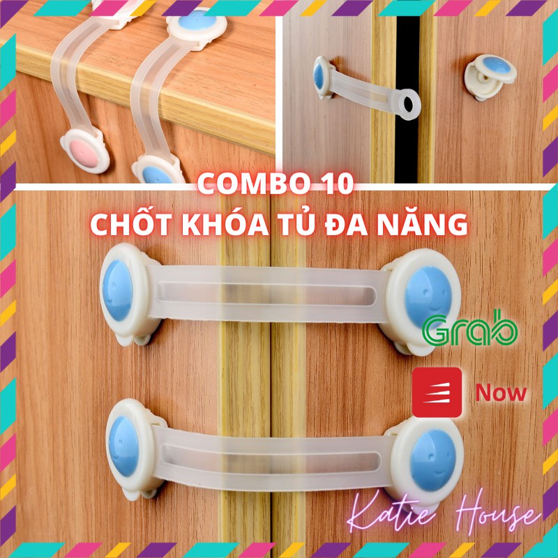 Giới thiệu [Combo 10 Cái] Chốt Khóa Cửa, Tủ Lạnh, Khóa Tủ, An Toàn Cho Bé ⚡ Loại To, Nhựa Dẻo