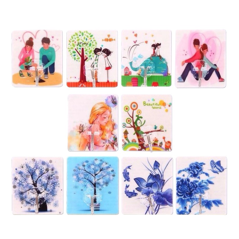 Combo 10 Cái Móc Dán Tường Đa Năng Họa Tiết 3D Siêu Dính Siêu Tiện Lợi - Giao mẫu ngẫu nhiên