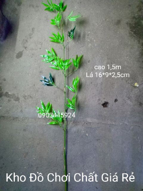 *Lá cây từ nhựa PVC bền đẹp được gắn chắc chắn vào cành trúc thật theo các đốt mấu được gắn keo.