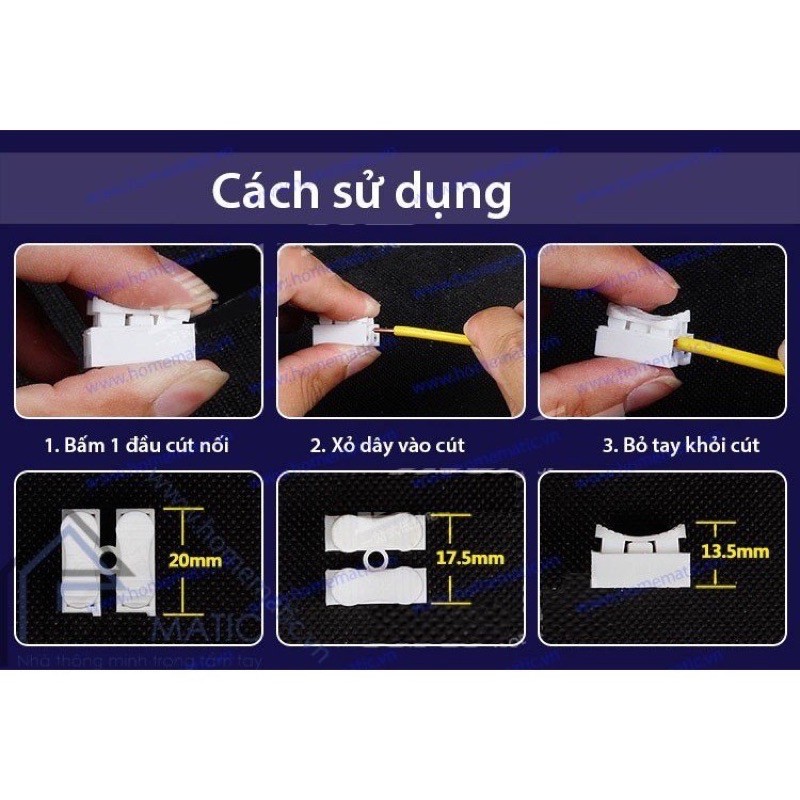 Để tháo ,nối dây một cách nhanh chóng an toàn, không cần bắt vít, không cần băng dính điện.Chỉ cần dùng đầu cầu nối kẹp nhanh 2dây điện là bạn có thể giải quyết vấn đề