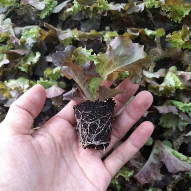 cây giống ươm vỉ như hình.Xà lách cây xòe to, giòn mềm, ưa nắng. Trồng đất thoát nước tốt. Cây có thể tỉa lá ăn dần sau 2 tuần trồng.