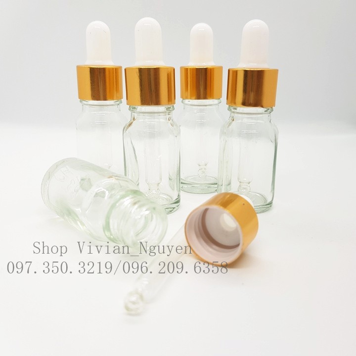 Giới thiệu Combo 10 Chai đựng Tinh Dầu, Serum 10ml, Thuỷ Tinh Trong suốt, Nắp Bóp Nhôm Vàng